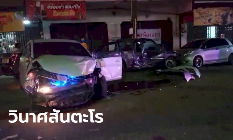 ต่อมาเวลา 20.30 น. (28 ส.ค. 64) พ.ต.อ.กุลชาต กุลชัย ผกก.สภ.บ่อทอง พร้อมด้วย พ.ต.ท.สมาน ศรีพูล สว.(สอบสวน)สภ.บ่อทอง รับแจ้งว่า เกิดอุบัติเหตุรถยนต์ชนกันจำนวนหลายคัน เหตุเกิดหน้าคิวรถเมล์ตลาดบ่อทอง ต.บ่อทอง อ.บ่อทอง จ.ชลบุรี หลังรับแจ้งจึงเร่งรัดเข้าตรวจสอบพร้อมหน่วยกู้ภัยสว่างเหตุบ้านทุ่งเหียง ในที่เกิดเหตุพบรถพบรถเก๋งนิสสัน สีเงิน ทะเบียน ญณ 9128 กทม.สภาพด้านหน้าเสียหายยับเยิน ซึ่งเป็นคันก่อเหตุพุ่งชนรถชาวบ้านประกอบด้วย รถเก๋งฟอร์ดสีดำ ทะเบียน 7707 กทม.รถกระบะอีซูซุสีเทา ทะเบียน 3975 ชลบุรี และรถเก๋งโตโยต้ายาริส สีบรอนซ์ ทะเบียน 2322 กทม. ทั้งหมดเป็นรถของชาวบ้านที่จอดริมถนนได้รับความเสียหายหนัก