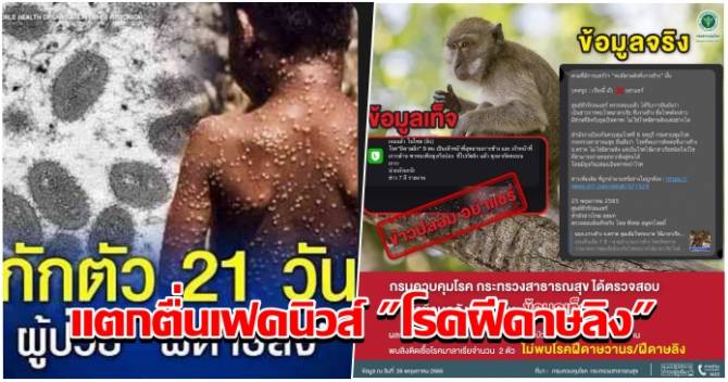 ผู้สื่อข่าวรายงานว่า ตลอดทั้งวัน 26 พ.ค.65 จากกรณี มีการแชร์สนั่นในโลกโซเซียลว่า “เจอแล้วในไทย โรคฝีดาษลิง เป็น จนท.อุทยานเกาะช้าง จ.ตราด และ จนท.เกาะล้าน จ.ชลบุรี ภาหะคือ ยุงก้นปล่อง ที่ไปกัดลิง แล้วยุงมากัดคนบนเกาะ น่ากลัวนะจ๊ะ ข่าว 7 สี รายงาน
