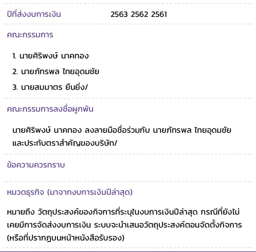 ปรากฏชื่อ นาย ศิริพงษ์ นาคทอง  นาย ภัทรพล ไทยอุดมชัย  นาย สมมาตร ยืนยิ่ง เป็นกรรมการผู้มีอำนาจ