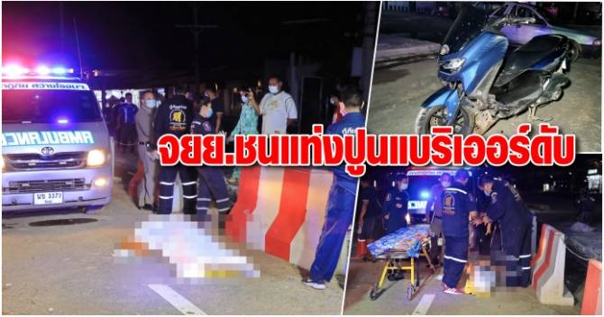 หนุ่มขับจยย.ชนแท่งปูนแบริเออร์ดับ