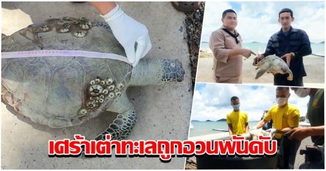 เศร้า! ทหารเรือเก็บกู้ซากเต่าทะเลถูกอวนพันร่างจมน้ำสิ้นใจอนาถ