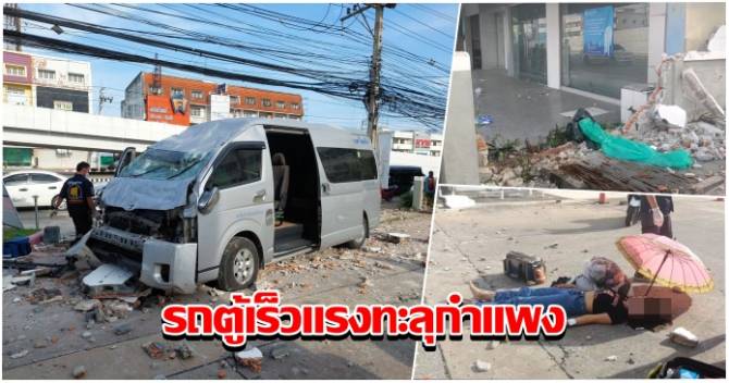 รถตู้เสียหลักพุ่งชนกำแพงทะลุเข้าปั๊มน้ำมันพังยับเจ็บ 2