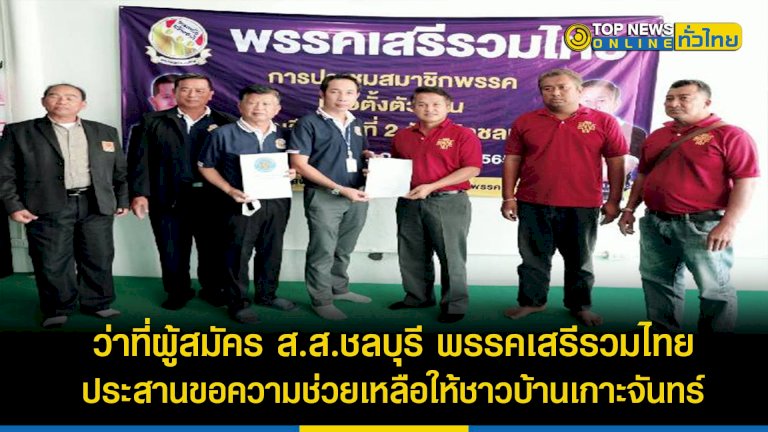 เวลา 13.00 น.วันที่ 30 พ.ค.65 ผู้สื่อข่าวได้รับแจ้งจาก นายพงษ์วริษฐ์ วงศ์หนองแวง ผู้ช่วย ส.ส.พล.ต.อ.เสรีพิศุทธ์ เตมียเวช หัวหน้าพรรคเสรีรวมไทย นายณพล บริบูรณ์ นายสุชาติ นันทานนท์ 3 ว่าที่ผู้สมัคร ส.ส. จ.ชลบุรี พรรคเสรีรวมไทย ว่า เครือข่ายภาคประชาสังคมแทนคุณแผ่นดิน นำโดย นาวาโทสุนทร แพงไพรี ประธานเครือข่ายฯ นายสมชาย หงษ์แก้ว นายสมุทร ธรรมมงคล ตัวแทนชาวบ้าน ต.เกาะจันทร์ ได้ยื่นเอกสารในความเดือดร้อนของประชาชน ผ่านว่าที่ผู้สมัครส.ส.พรรคเสรีรวมใจไทยจ.ชลบุรี เพื่อประสานไปยังนายภัครธรณ์ เทียนไชย ผู้ว่าราชการจังหวัดชลบุรี เพื่อขอความช่วยเหลือในเรื่องความเดือดร้อนของชาวบ้านจำนวน 14 ครอบครัว ที่พักอาศัยอยู่ที่ชุมชนหน้าวัดพระพุทธบาทเขานางนม ม.5 ต.ท่าบุญมี อ.เกาะจันทร์ จ.ชลบุรี