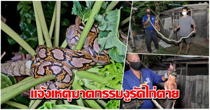 กู้ภัยถึงกับ งง! รับแจ้งเหตุฆาตกรรม ไปถึงคนร้ายเป็นงูเหลือมรัดไก่จนตาย